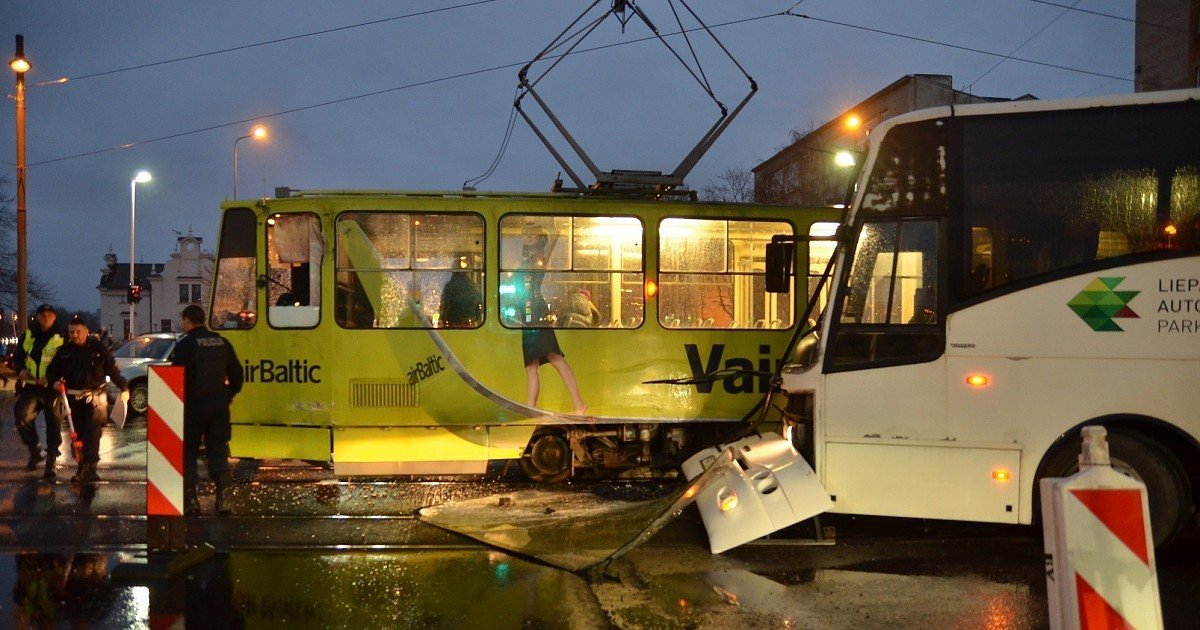 Attēla avots: https://skaties.lv/degpunkta/degpunkta-satiksme/avarija-liepajas-centra-autobuss-saskrienas-ar-tramvaju/