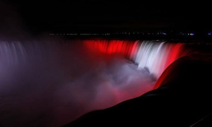 Tāpat Latvijas Republikas simtgades priekšvakarā šodien no plkst.21 līdz 21.15, no plkst.22 līdz 22.15 un no plkst.23 līdz 23.15 pēc vietējā laika, Niagāras ūdenskritums tiks izgaismots Latvijas karoga krāsās.