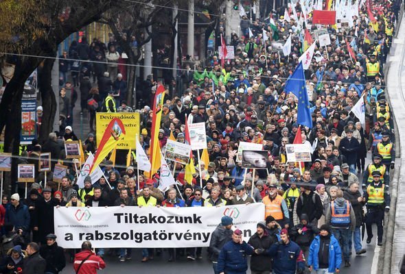 FOTO avots: https://www.express.co.uk/news/world/1056260/hungary-protests-viktor-orban-slave-law-overtime-rules