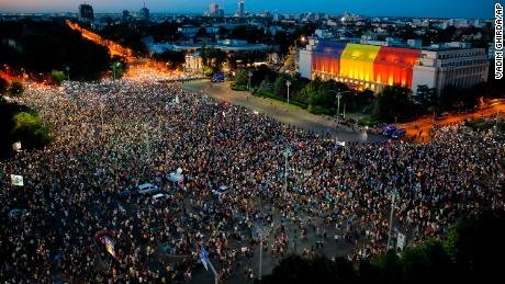 FOTO avots: https://edition.cnn.com/2018/08/12/europe/romania-second-night-protests-intl/index.html