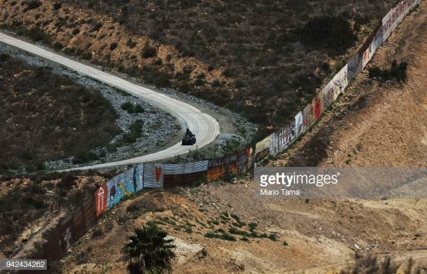 FOTO avots: https://www.gettyimages.in/detail/news-photo/an-officer-patrols-the-u-s-side-of-the-u-s-mexico-border-on-news-photo/942434262