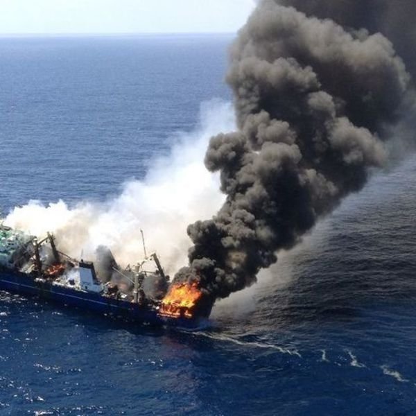 Ugunsgrēks izcēlies brīdī, kad degviela pārkrauta no viena kuģa otrā. Glābjoties no nāves briesmām, abu kuģi jūrnieki metušies pāri bortam jūrā.