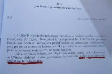 Akts, kura fragments ir nonācis Pietiek rīcībā, ir datēts ar 2016. gada 20. decembri. Saskaņā ar to Valsts policijas Galvenās kriminālpolicijas pārvaldes Kriminālizmeklēšanas pārvaldes 2. nodaļas vecākā inspektore Diāna Rasļonoka kādā kriminālprocesā pieņēmusi lēmumu par rīcību ar lietiskajiem pierādījumiem un izņemtajiem priekšmetiem.