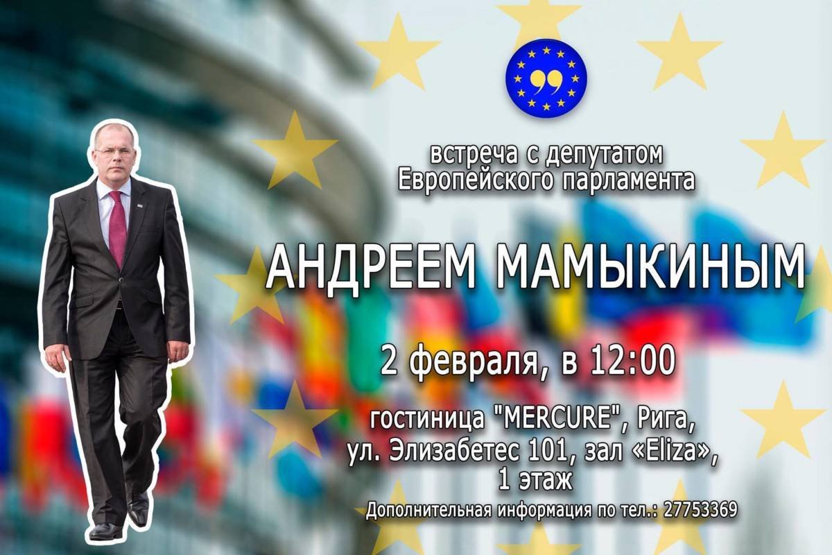 02.02.2019 plkst. 12 viesnīcā Mercure notiks tikšanās ar Eiropas Parlamenta deputātu Andreju Mamikinu