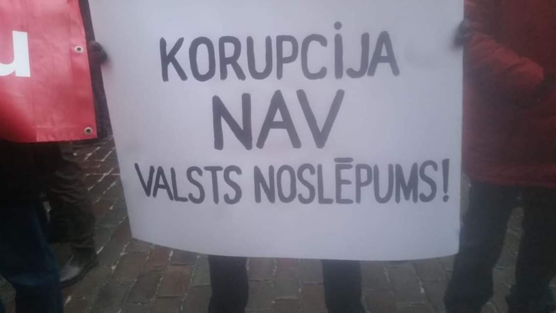 Uz Jaunā konservatīvās partijas (JKP) rīkoto pasākumu daudzi atnākuši ar plakātiem. Daži no tiem vēsta: “Kalnmeiers = korupcijas marionete”, “Tauta var”, “Korupcija – tautas nabadzība”, “Par oligarhijas demontāžu un Satversmes darbības atjaunošanu”.