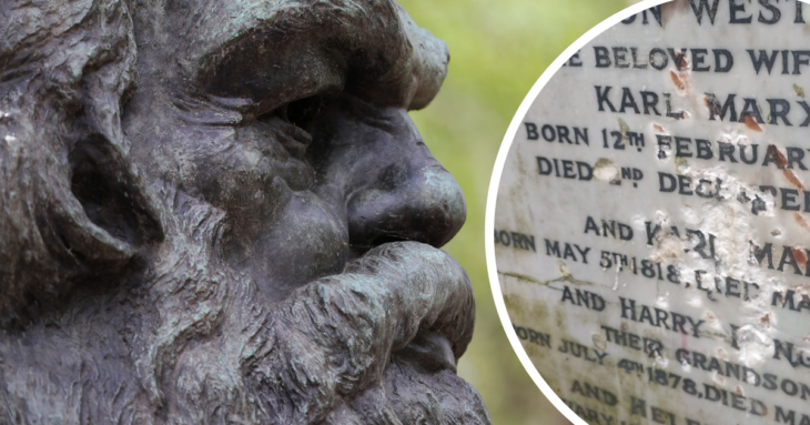 Attēla un info avots: http://newsitn.com/someone-whos-not-a-fan-of-karl-marx-has-smashed-up-his-north-london-grave-with-a-hammer/amp/