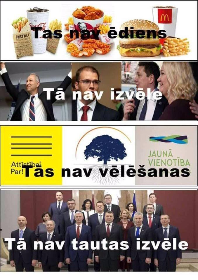 Un tagad padomājam – skolotāju algu reformas, TTIP, CETA, uzņēmējdarbības vides graušana, sankcijas pret Krieviju, kā rezultātā cieš paši Latvijas ražotāji, militārā konflikta veicināšana pie Krievijas robežām … un vēl daudz, daudz kas cits, kas notiek Latvijā neliek jums savilkt paralēles ar augstāk izlasīto??? Ar katru ministru, ar katru valdību, ar katru jaunu amatpersonu, mēs redzam, kā nelietības un cinisma līmenis ar vien pieaug un Latvija tiek ar vien vairāk izputināta!