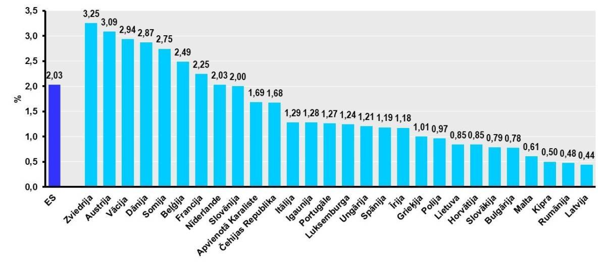 Pētniecības un izstrādes intensitāte 2016. gadā