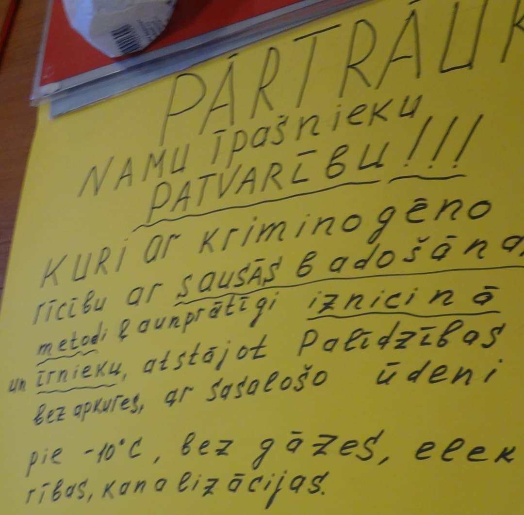 “Kāda ir mana vaina ?!” Šodien M. pazvanīja, 5. decembrī viņa uzvarēja tiesā – viņas tiesības dzīvot dzīvoklī Maskavas ielā, kurā viņa dzīvoja kopš 1979. gada, tika atzītas par likumīgām. Māja izrādās pieder privaatīpašniekam. Bet jaunajiem īpašniekiem tiesas lēmums nav nekāds oblugātais ukazs. Jūs nevēlaties labprātīgi atbrīvot un dāvināt savu dzīvokli īpašniekiem un pat vēršaties tiesā! Tāpēc mēs izslēdzam elektrību. Un atvienots. Šādas esot tipiskas pirmssvētku dienas privātnamu iedzīvotājiem. Sākam apkopot informāciju par māju īpašniekiem, kuri ir izrādījušas īpašu “aprūpi” cilvēkiem, kuri nejauši nonākuši šo pašu īpašnieku varā.