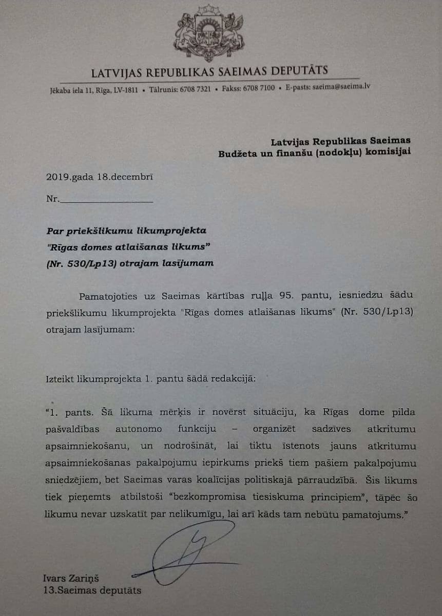Ja jau tā, esmu sagatavojis atbilstošus likuma grozījumus šajā “likumā” – iekļaut Rīgas domes atlaišanas likumā tā patieso mērķi: