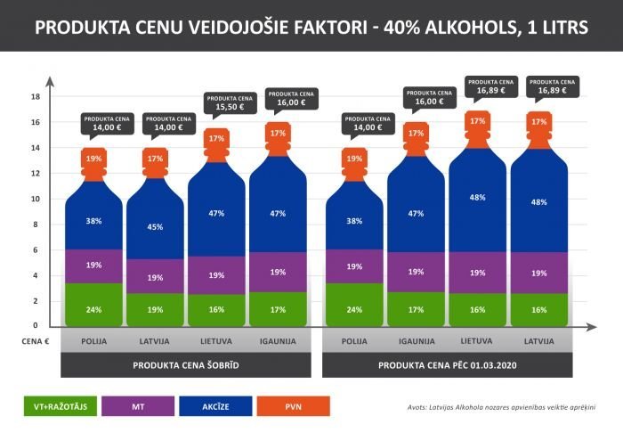 Asociācijas izpilddirektors norādīja, ka tad, ja Saeima paliks pie plānotā akcīzes nodokļa paaugstinājuma par 30% stiprajam alkoholam, Latvijā un Lietuvā būs dārgākais alkohols Baltijas reģionā. Savukārt lētākais stiprais alkohols būs Polijā, arī Igaunijā cenas būs zemākas nekā Latvijā un Lietuvā.
