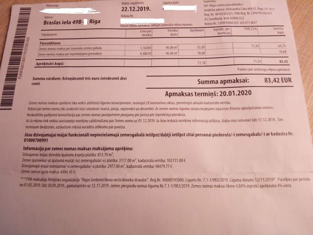 Lūk,kā mūs apzog,maldina Rīgas Namu pārvaldnieks (RNP).atsūta piespiedu zemes nomas maksu 30.12.19, līdz 31.12.19 var iesniegt pretenziju,ja nav iesniegta, tad esi piekritis (Šim termiņam beidzoties,uzskatīsim rēķinā norādīto atlikumu par pareizu). Mistiski pieskaita naudas summas (C)(zemes nomas maksa par iepriekšējiem periodiem).